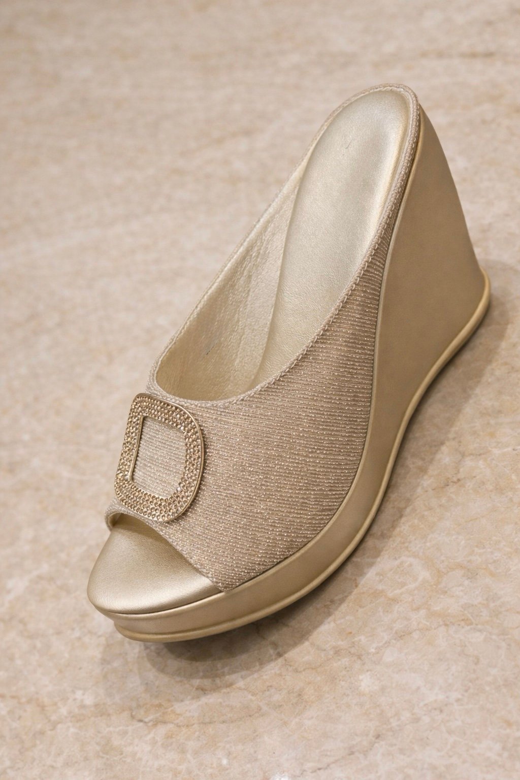 حذاء كعب عريض من الجلد عليه اكسسوار بكرستالات صغيرة